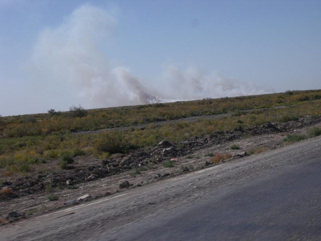 Und so sehen wir schon bald riesige weisse Rauchwolken am Horizont – sollte da tatsächlich eine Rakete gestartet werden? Oder ein Treibstofhangar explodiert sein? Oder ein kasachischer Bauer ganz profan sein Stoppelfeld abgefackelt haben?