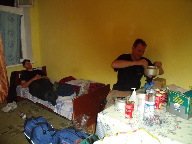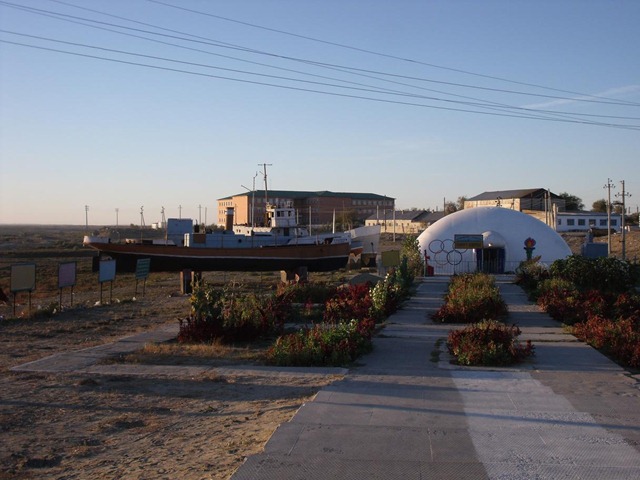Danach wurden Oropax montiert – unglaublich der Sound eines 2-Liter-Motors ohne jegliche Abgasführung/Dämpfung – da hört man wirklich jedes Ventil einzeln klappern und die Kolben schreien. Ist allerdings eher ungünstig bei Polizeikontrollen – und eine solche war dann bei der Einfahrt in Aralsk nicht zu vermeiden – zum Glück ein netter und verständiger Polizist. Und nochmals hatten wir Glück – weil uns ein Einheimischer den Weg zum Hotel wies – ansonsten hätten wir mit unserer Rohrerei wohl halb Aralsk aus dem Bett geholt und wären vermutlich direkt aus der Stadt verbannt worden.