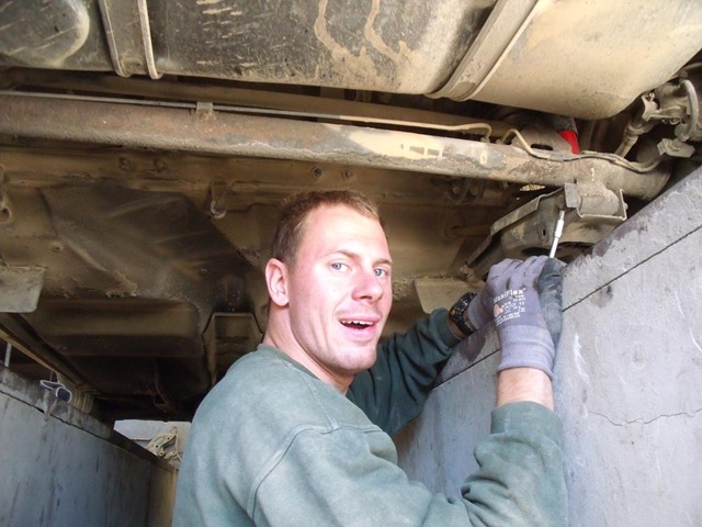 Irgendwann um 10:00 durften wir dann mal rein fahren und der Stift begann das Auto des Chefs zu waschen. Und irgendwann nach 11:00 fuhr dann der Master ein und besah sich die Bescherung. Danach fuhr er dann wieder weg – klar – musste wohl erst seine innere Mitte finden und Material beschaffen. Ist hier überall so. Also das mit dem Material beschaffen – nicht mit der inneren Mitte – die haben sie irgendwo anders – halt auch kalt hier im Winter und heiss im Sommer. Aber das Material holen – klarer Fall von just in Time Produktion – auch dies – überall in diesen Ländern schon langjährig gelebte Realität. Keine Werkstätte hat mehr als ein paar rostige Schrauben und verbogene Stücke Blech an Lager – wozu auch? Alles was man an Lager hätte wäre sowieso immer das falsche Teil – also hat man nix und geht dann erst irgendwo beschaffen. Immerhin aber durften wir mit Erlaubnis des Masters den Wagen über die Grube fahren und konnten in Ruhe die abgefallenen Gummidämpfer wieder montieren. Konnte nicht schaden, bei den bisher erfahrenen Schotterpisten.