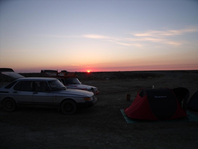 Wir machten dann das beste aus diesem Unglückstag und liessen uns von den Dänen mit Dosenkost verwöhnen – leckere Köttbullar oder so an Currysauce mit Reis – manchmal braucht es wenig zur Zufriedenheit – das war echt nicht mehr bloss Hyggeligt sondern Hyggeren! Und morgen würden wir dann halt mal wieder eine Autoreparatarstätte suchen, den Auspuff schweissen lassen und dann gemütlich Atyrau entgegenmotoren – irgendwo in der Wüste campieren – ein schweizerisches Fondue geniessen und das Leben würde gut sein – aber erstens kommt es… Motor off.