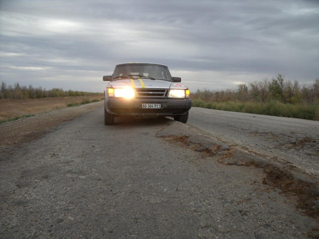 Wir müssen vom Vortag nachtragen – nicht nur das Ende ist dünn geworden – auch unsere Nerven sind dünner! Dass die xy-stan Staaten problematisch sein würden wussten wir ja. Hat man sich darauf eingestellt. Und trotzdem jede Menge Überraschungen erlebt, die wir nie erwartet hätten – wie z.B. die Offroaderei in Kasachstan. Haben wir alles durchgestanden – aber jetzt vor den Toren Europas nochmals derart herausgefordert zu werden – das traf uns unerwartet. Statt einem gemütlich Gentleman-mässigen durchcruisen des Landes der nächsten Fussballeuropameisterschaft und der Besichtigung der wichtigsten Kulturstätten nur noch ein durchhetzen – 1700 Kilometer – teilweise übelster Schlaglochpisten in zwei Tagen – das haben wir nicht verdient. Aber damit nicht genug! Denn noch etwas war dünn geworden – nämlich der obere Gummidämpfer bei der Befestigung des vorderen linken Stossdämpfers unseres treuen Saabs. Wussten wir aber noch nicht so genau – nur dass es mal wieder komisch klang – aber wir wollen nicht vorgreifen!