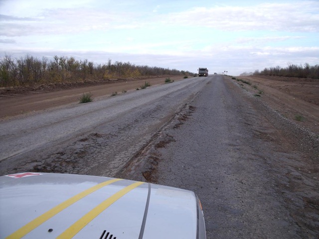 Es kam wieder mal anders. Nach der zweispurigen – topfebenen Autobahn nach Aktobe kalkulierten wir mit europäischer Marschgeschwindigkeit um in Uralsk dann die Grenze nach Russland zu überqueren. Aber gleich Ausgangs Saratov holte uns die vergangen geglaubte kasachische Realität wieder ein