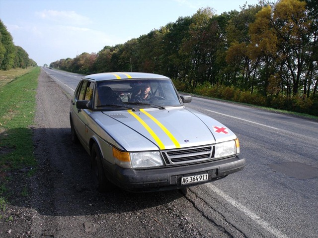 Fahrtechnisch gibt es ja nicht viel zu berichten – zum Glück! Keine Achsbrüche – keine unberuhigenden Geräusche – vielmehr (manchmal) das leise Rattern der Antriebswelle (deuten wir mal so – sind aber immer noch keine Saabexperten) – das leise Schlagen des Auspuffs gegen die Karosserie bei starken Bodenwellen – hallo – ich bin noch dran – beruhigend. Vorbei am europäischen Baikonur oder so ähnlich