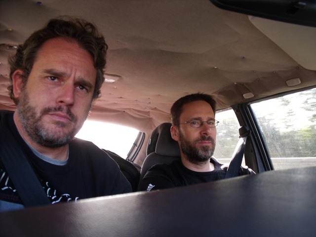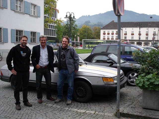 Und damit beginnen die letzten Stopps unserer Mission: Zuerst in Österreich, nahe an der Schweizer Grenze: Wir müssen – nach fast fünf Jahren Gewissheit haben. Gibt es unseren Helden von Afrika, d.h. von Plymouth-Banjul 2006, Fritz den Fahrerfotograf oder Fotografenfahrer noch? Wir sind nervös – drei lange Wochen sind wir damals mit den beiden Österreicher-Teams quer durch etwas Afrika gefahren – von Marokko runter nach Gambia – damals im VW Scirocco – ein Wüstenwind – kommt aus der Wüste – geht in die Wüste – um ein Haar, hätten uns unsere Österreichischen Helden nicht die verbogene Hinterradaufhängung wieder gerade gebogen. Tempi passati – aber Fritz den Fahrerfotografen – den wollen wir endlich mal wiedersehen! Und tatsächlich – er ist da – und erkennt uns trotz unserer Ganoventarnung mit Bart und Spiegel-*****-Sonnenbrille (Joni – du weisst – die Brillen gehen auf dich – Respekt vor soviel Style) sofort. Hallo!
