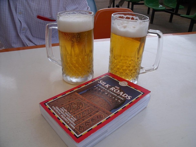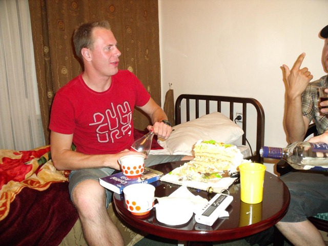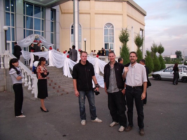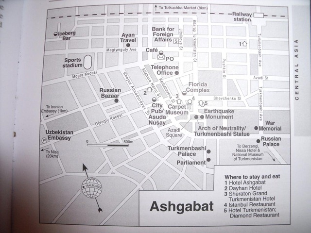 Nach all den Zweifeln im Iran, tat es richtig gut – sich mal wieder in einem grösseren Team zu finden und die anstehenden Herausforderungen planen zu können. Priorität hatte dabei natürlich das Nachtleben in Ashgabat – angeblich sollen also in der Iceberg Bar links oben die Eisbären auf dem Tresen steppen und die Kamele drumherum Polka tanzen – nichts wie hin. Gesagt getan – allerdings war der Bär dort wirklich nicht los – wir bekamen mit knapper Not einige Schaschliks, welche wir dann wegen Stromabschaltung im Dunkeln verspeisen durften. Also weiter in den nächsten Schuppen, dort bekamen wir immerhin mal noch ein Bier. Und danach halt in den Florida Komplex wo sich die Expats zum überteuerten Bier treffen – aber da ja demnächst ein Geburtstag anstand, war reinfeiern eigentlich fast schon Pflicht. Gesagt getan, wobei uns die gesalzenen Preise von ganz alleine mässigten…
