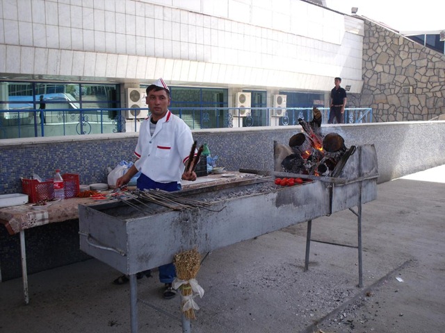 Der russiche Basar mit lokalem Grillchef, der sich uns nicht entgehen liess
