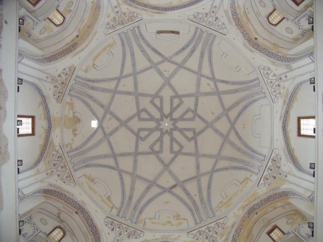 Und hier das Mausoleum von innen – richtig – mit einem Loch im Dach – denn das Mausoleum war für die Lieblingsfrau eines Turkmenen, welcher allerdings drei Gebote einhalten musste, die er in der Folge nicht einhielt und nachdem sie ihm zwei Mal verziehen hatte, machte sie beim dritten Mal ernst und stieg in den Himmel auf. Damit er aber trotzdem in Kontakt mit ihr sein konnte, riet sie ihm, ein Mausoleum mit einem Dach im Loch zu bauen – so würde er sie sehen können.