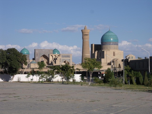 Die Kuppeln verschiedener Medresen und das grosse Minarett – das Wahrzeichen Bucharas