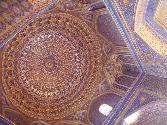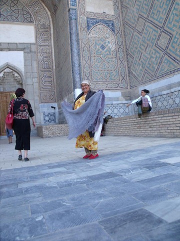 und von hinten grüsst die Tilla Kori Medrese (das bedeutet “die Goldene”) und wir können nachvollziehen, dass diese Medrese angeblich das schönste, feinste und prunkvollste Bauwerk ganz Zentralasiens sein soll. Zusammen formen die drei Medresen sodann den schönsten Platz Zentralasiens – auch das trifft wohl zu – Schönheit ist ja nicht so absolut wie Grösse – dort wissen wir – rult der Eman E Khomeini Platz in Esfahan.