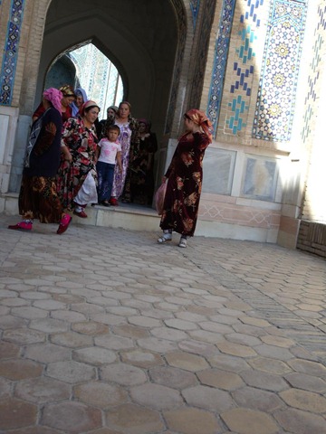Unsere Führerin gestaltet übrigens nicht nur die Führung sehr interessant und anschaulich, sondern war offenbar auch eine lokale Berühmtheit, so dass sich einige Mitglieder dieser turkmenischen Reisegruppe mit ihr ablichten lassen wollten.
